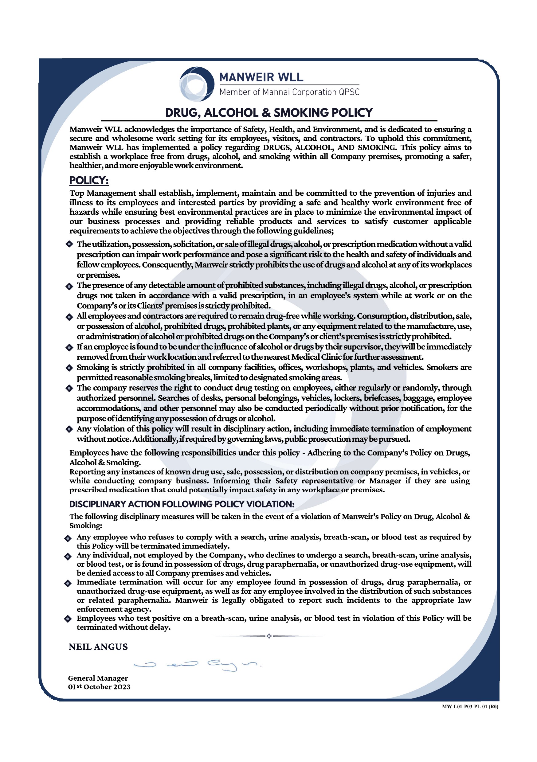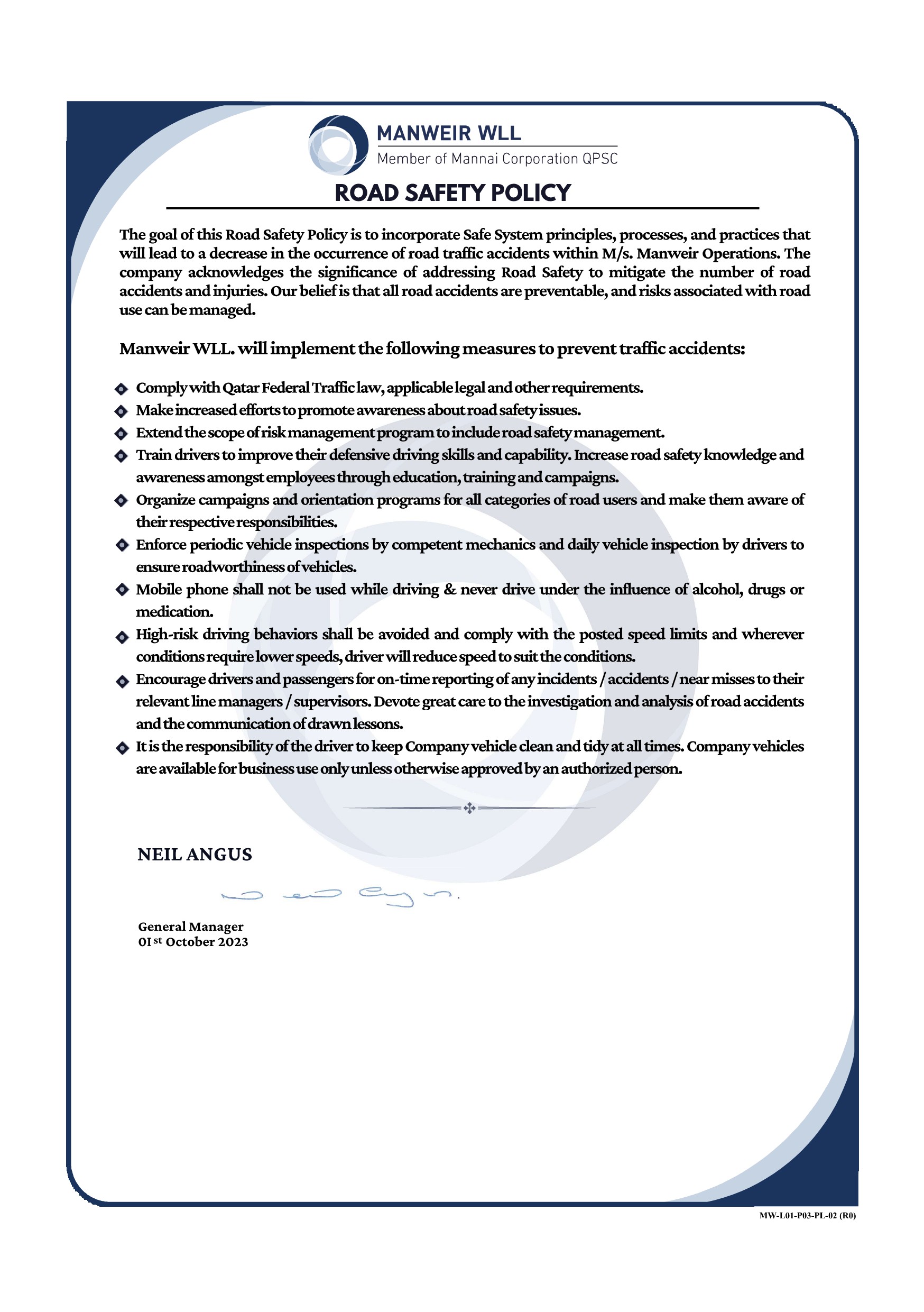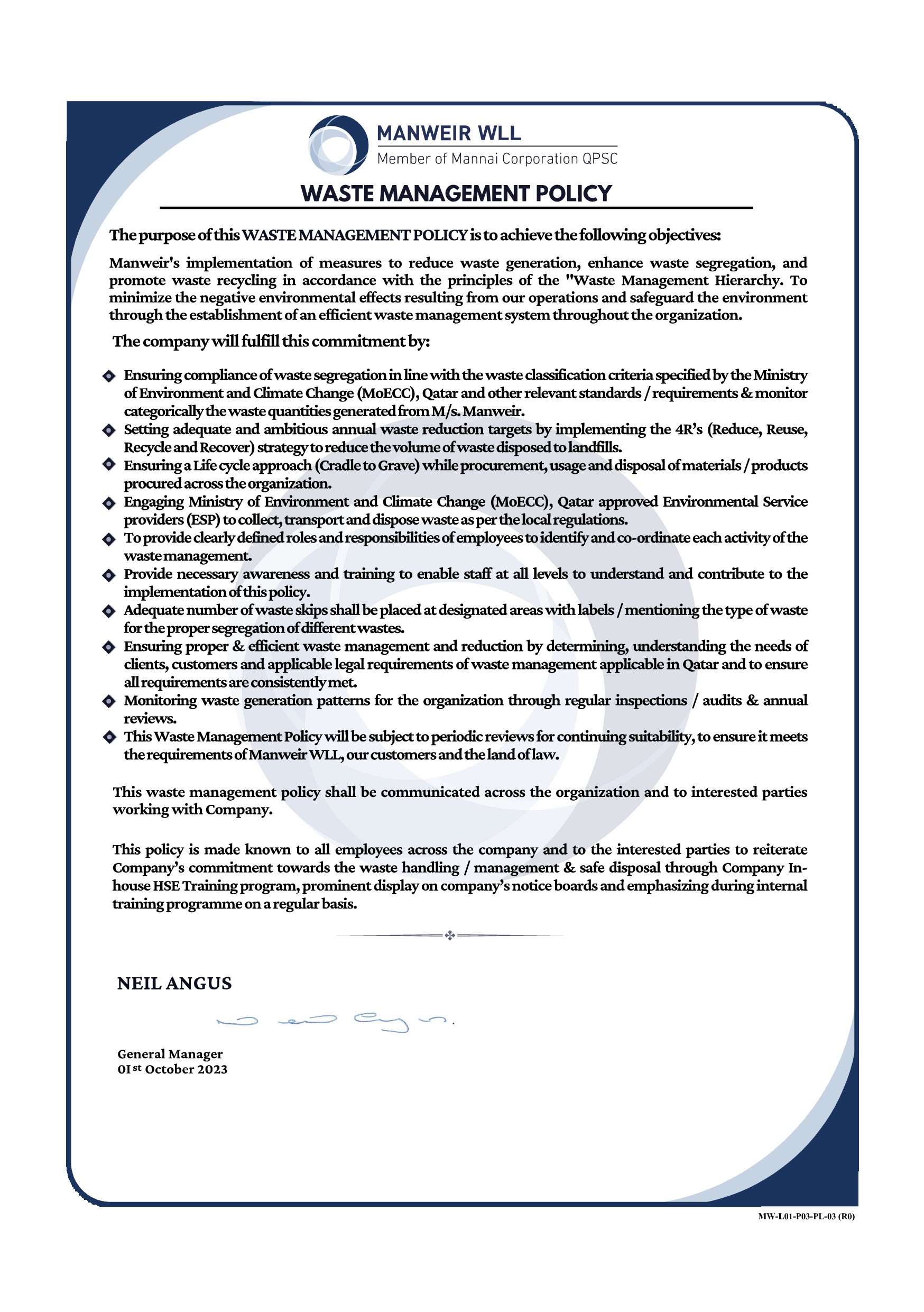 Manweir migrated from quality management system (QMS) to integrated management system (IMS) in 2018 and is certified to ISO 9001:2015, ISO 14001:2015 & ISO 45001:2018. It is the policy of Manweir to continually improve the effectiveness of our management system and to ensure that our products and services meet the requirements of our customers at all times. This policy is made known to all employees of Manweir by distribution of the manual, by prominent display on the company notice board and by emphasis during any internal training program.